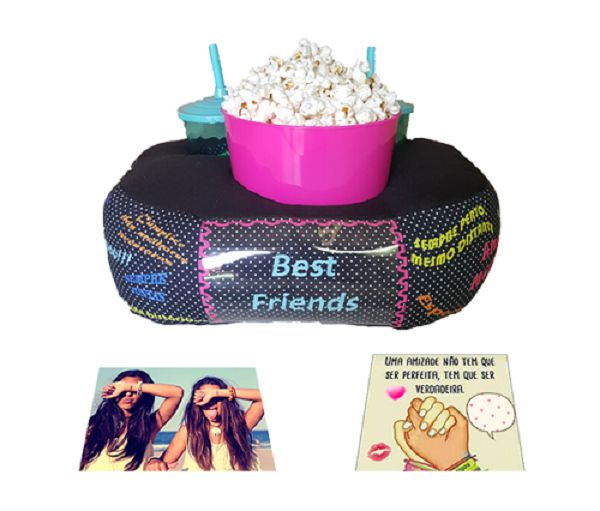 Acompanha 1 balde 2,0 litros para pipocas, 2 copos 600 ml com tampas e canudos.