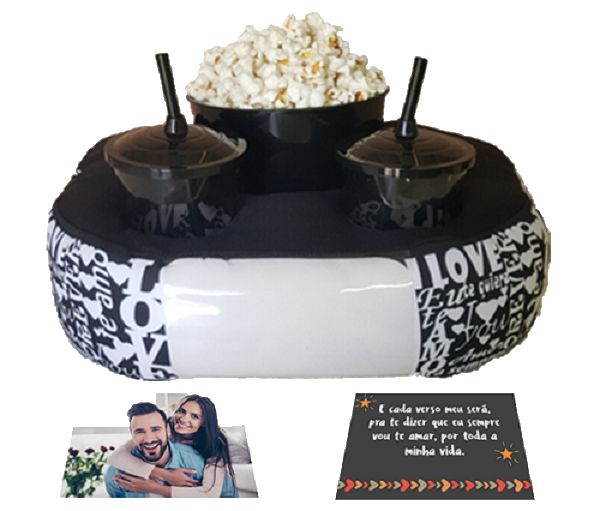 Acompanha 1 balde 2,0 litros para pipocas, 2 copos 600 ml com tampas e canudos.